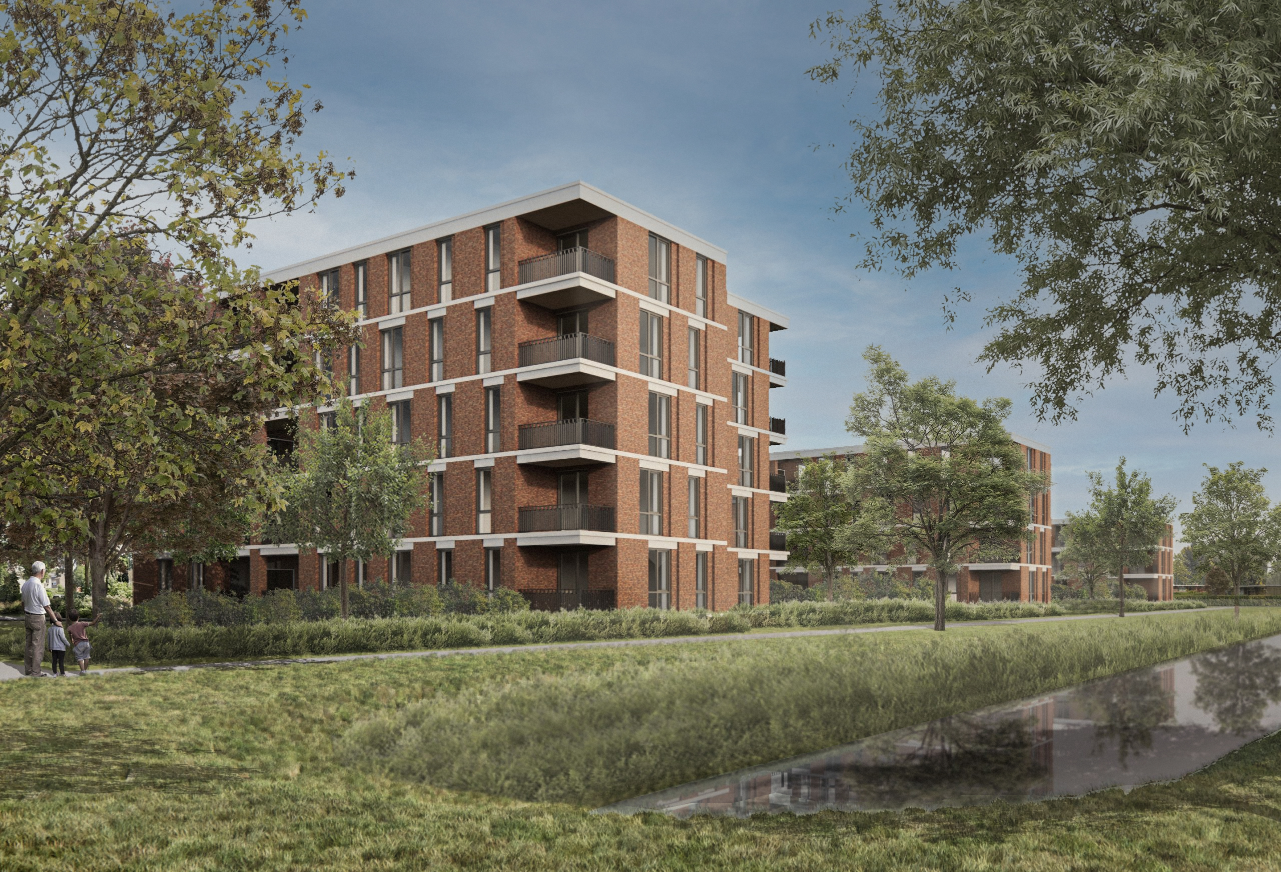 In de Burgemeester van Welderenstraat in Tiel maakt verouderde bebouwing plaats voor 60 sociale huurappartementen. Drie gebouwen met een herkenbare familie‑architectuur vormen samen een groen woonensemble. Onder de gebouwen ligt een doorlopende, halfverdiepte kelder met parkeervoorzieningen en bergingen. Boven maaiveld draait het om prettig en betaalbaar wonen; in de onderbouw zorgen we voor rust en ruimte rondom de woningen. De compacte stedelijke inpassing, de halfverdiepte kelder en de ambitie om betaalbaar te bouwen vroegen om een zorgvuldige bouwkundige uitwerking en een nauwe samenwerking binnen het bouwteam.