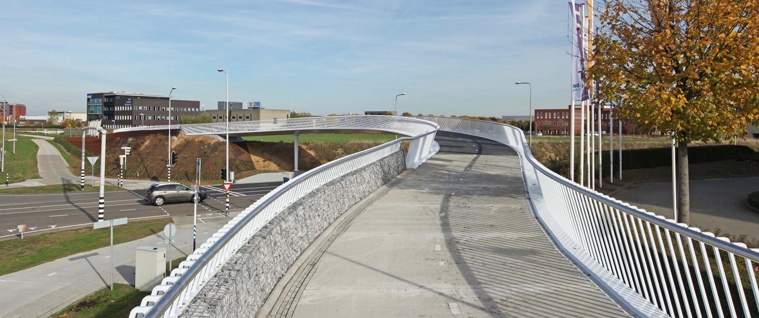 Deze fietsbrug maakt onderdeel uit van de snelfietsroute Sittard-Maastricht. Vanwege de ligging naast Maastricht Aachen Airport en Technoport Europe is het ontwerp geïnspireerd op de vliegtuigindustrie. Dit is terug te zien in de vleugelvormige dekdoorsnede van de fietsbrug, maar ook in het slanke en transparante ontwerp en de vloeiende beweging die de brug maakt.