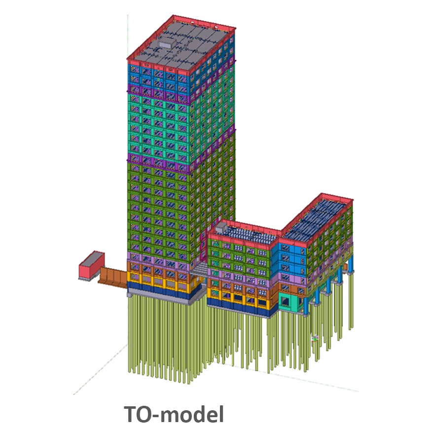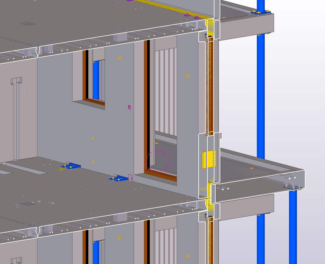 Omdat VeriCon naast de rol van hoofdconstructeur ook die van prefab engineer op zich nam, konden voorspanstrengen in de voorgespannen vloerplaten direct worden meegenomen, waardoor de installateur rekening kon houden met de doorvoeren in de vloeren. De 3D-detaillering van de gevel werd al in een vroeg stadium in het model uitgewerkt, waardoor de maakbaarheid van het project kon worden getoetst. Het hele gebouw is voor de prefab-engineering en bijbehorende montagedetails tot op het schroefje toe uitgewerkt in Tekla. Het gedetailleerde 3D-model stelde de betrokken partijen in staat om eventuele problemen in een vroeg stadium op te sporen en op te lossen, en om de maakbaarheid van het ontwerp te toetsen. Door de elementen in 3D te wapenen, konden buigstaten direct uit het model worden gehaald.