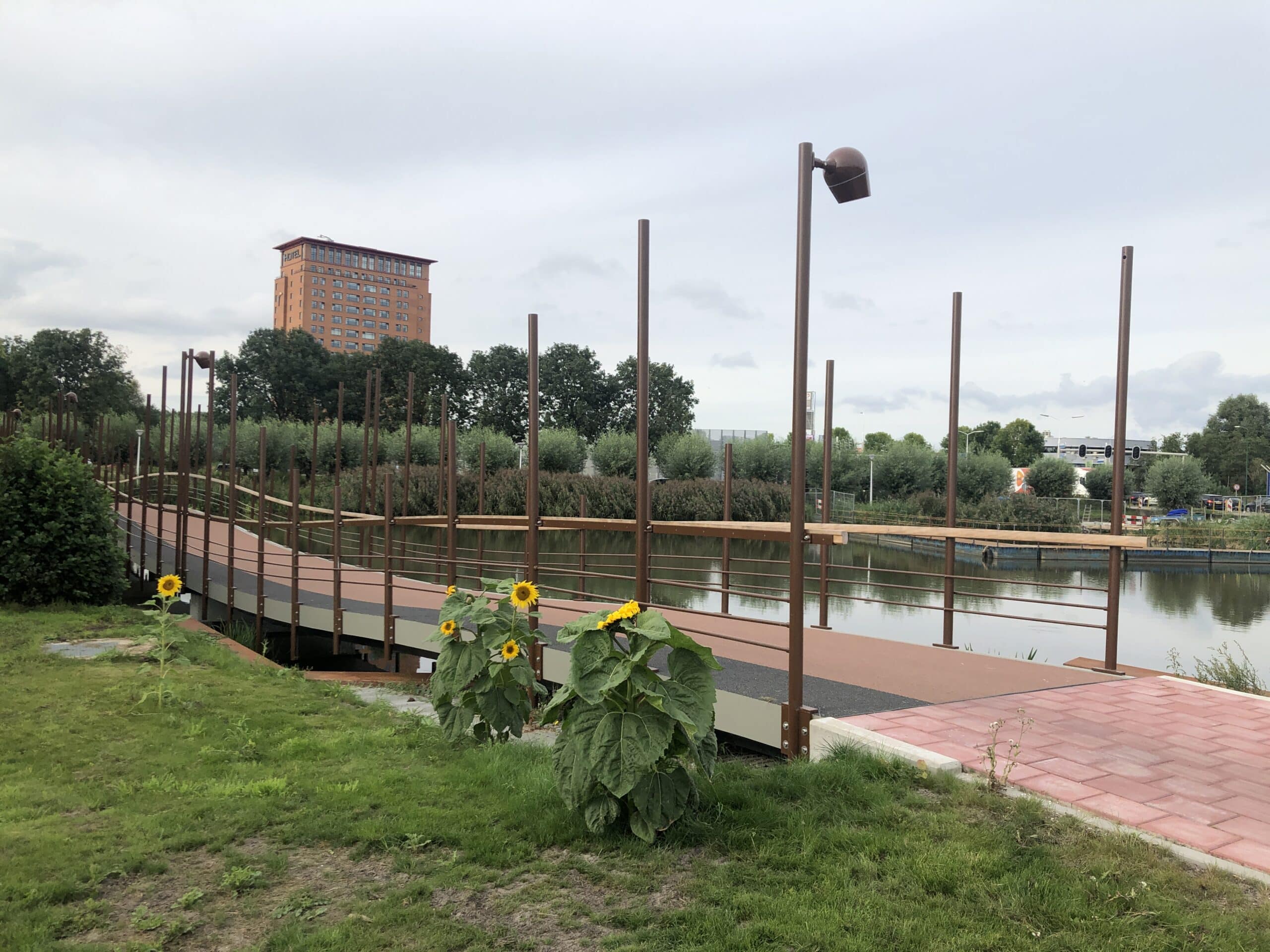 De Hoonbrug trekt geen kaarsrechte streep over het water, maar hij maakt een golfbeweging van de ene oever naar de andere. In de volksmond wordt ook wel gesproken over de Kamelenbrug, vanwege de suggestie van een paar bulten die boven het water hangen. Eroverheen fietsen voelt een beetje alsof je over golven fietst.