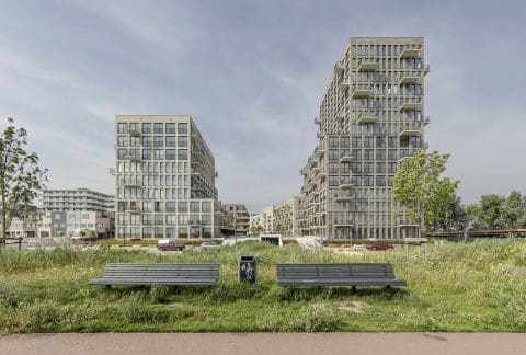 Het tweede project ‘The Beacons’ zijn 110 huur- en koopwoningen in twee woonblokken gerealiseerd op Zeeburgereiland, een nieuwe stadswijk in het oosten van Amsterdam. De woonblokken staan beiden op een parkeergarage. Op het kelderdek tussen de woonblokken is plaats voor een nieuwe groene buitenruimte.